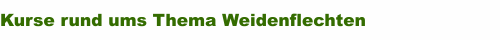Flechtkurse werden von verschiedenen Veranstaltern angeboten. Frau Petra Maier tritt dabei als Dozentin auf, gibt aber auch im geringen Umfang Kurse bei sich zu Hause. Je nach Aufwand reicht der Zeitbedarf von einen halben bis zu zwei Tagen. Nachfolgend sehen Sie einige Beispiele und im Anschluss Links von Veranstaltern.